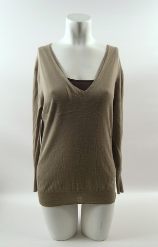Yesterday Dr. Will Caster was only human Straight from the set of Transcendence, this is Evelyn Caster (Rebecca Hall) screen worn, hero, quilted mossy green long sleeve zipper front with plaid lining 'Barbour' coat, (size 10) taupe v-neck long sleeve 'J. Crew' sweater, (size M) dark brown 'BP' camisole, (size S) and slight wash denim 'J. Brand' jeans. Includes wardrobe tag!