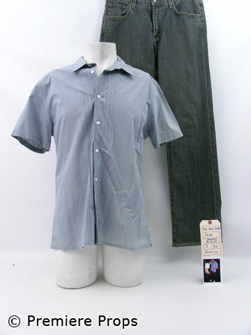 "The truth isn't pretty."As seen in the new summer blockbuster, The Ugly Truth, this is Mike's (Gerard Butler) screen worn light blue with micro white pinstripes short sleeve button down with collar "John Varvatos" shirt, (size L) and dark blue/black denim five pocket "Agave" jeans. (size 34X33) Includes wardrobe tag! An excellent addition to your movie memorabilia collection!