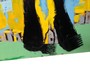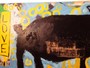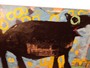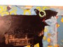 Based on a true story. From the set of The Upside, this is a screen used, hero, almost final stage, large painting on a wood board done by Dell (Kevin Hart) in the film. Painting is of a black dog with real hair combs for teeth and claws,. Thumb tacks and cardboard are painted in on the dogs belly for a textured look. Background is bright color of a city and buildings. The word love is written on the left side of the painting. One of the most iconic and memorable pieces in the film. (58x37)
