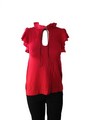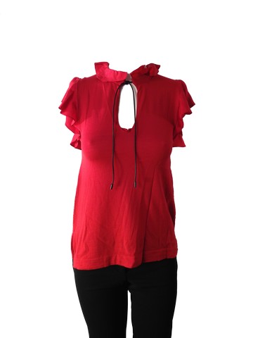 Based on a true story. From the set of The Upside, this is Jenny (Genevieve Angelson) screen worn, hero, red knit "Louis Vuitton" sleeveless shirt with silk ruffles at sleeves and neck with black suede strings, black "Derek Lam" pants wide leg with crease(4), black "Brooks Brothers" patent leather shoes(7.5). Wardrobe tag included. Worn in scene 44F.