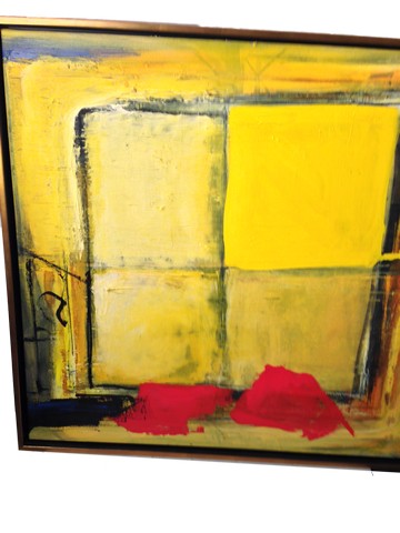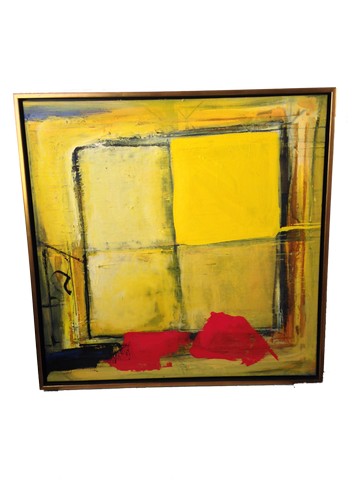Based on a true story. From the set of The Upside, this is Phillip (Bryan Cranston) screen used, hero, large oil painting "Messer" bright yellow orange and black.(43x43)