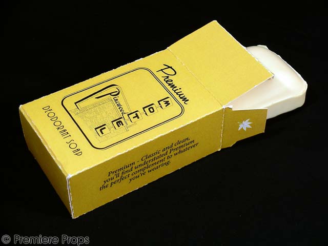 This bar of "premium deodorant soap" comes in a yellow paper box that bears the Pinewood Motel logo!