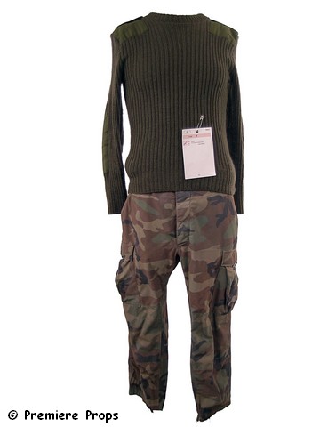 Dead sexy. Direct from the set of Warm Bodies, this is Kevin (Cory Hardrict) screen worn, hero, green with patches on the shoulders and the elbows military sweater, light green waffle 'American Apparel' thermal, green camouflage cargo pants, and black combat boots. Includes wardrobe tag!