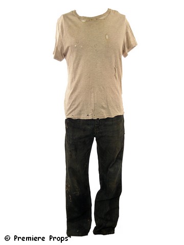 He's still dead but he's getting warmer. Direct from the set of Warm Bodies, this is R (Nicholas Hoult) main screen worn, hero, very distressed with holes, red 'H&M' hooded sweatshirt, (size L) very distressed with holes, heather grey 'H&M' crew neck t-shirt, very distressed blue denim 'Levis' jeans, (size 34) and very distressed black canvas 'Converse' shoes. This very costume can be seen in the one sheet movie poster and is the signature piece from the film. Includes wardrobe tag!
