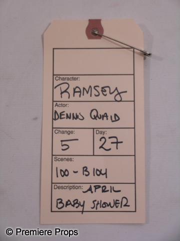 It's too late to pull out now. Straight from the set of What to Expect When You're Expecting, this is Ramsey (Dennis Quaid) screen worn, hero, olive green with tropical floral print 'Tommy Bahama' shirt, khaki 'Polo Ralph Lauren' shorts, (size 33) and dark brown 'Sperry Top-Sider' sandals. (size 12) Includes wardrobe tag!
