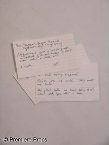 It's too late to pull out now. Straight from the set of What to Expect When You're Expecting, this is Wendy (Elizabeth Banks) screen used, hero, white index cards with notes for a speech.